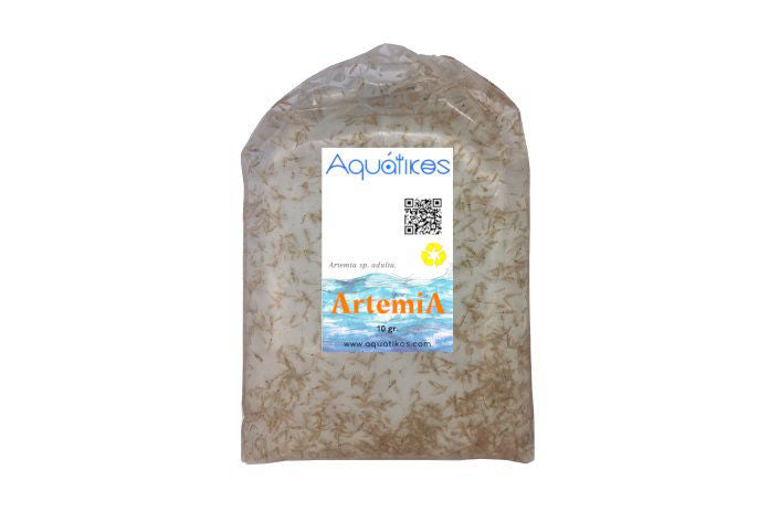 El formato de 100 gr, debe extraerse del envase de transporte y filtrar el agua. Tras lo cual pondremos la artemia en un recipiente de aproximadamente 40 l y aireación suave.