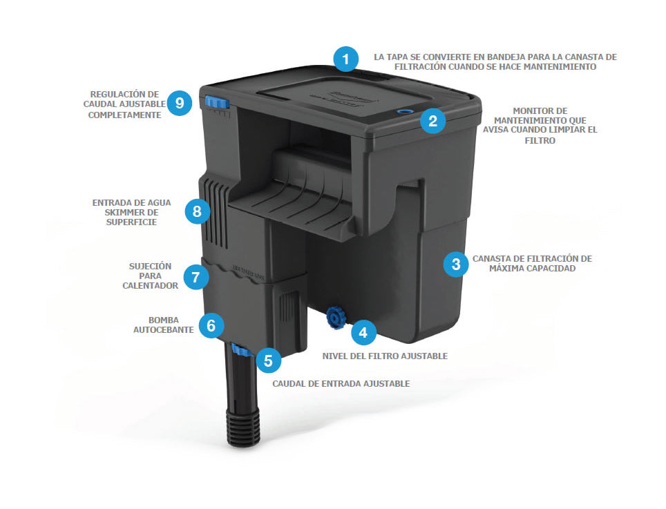 2. Tecnología de Autocebado: Olvídate de las complicaciones y el tiempo perdido tratando de poner en marcha tu filtro. El Tidal cuenta con una tecnología de autocebado que facilita su puesta en funcionamiento, ahorrándote tiempo y esfuerzo.
