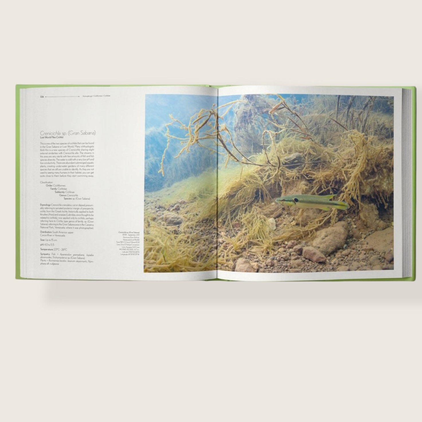 Vea los colores originales de estas especies cuando se encuentran en sus hábitats naturales y obtenga información valiosa de sus hogares, incluidas las ubicaciones de GPS, el pH y otras especies que comparten sus biotopos. Aprenda lo que significan o representan sus nombres científicos, anécdotas interesantes y observaciones del comportamiento de los peces en la naturaleza, y consejos de fotografía submarina, como la configuración y el equipo utilizado para tomar cada imagen.
