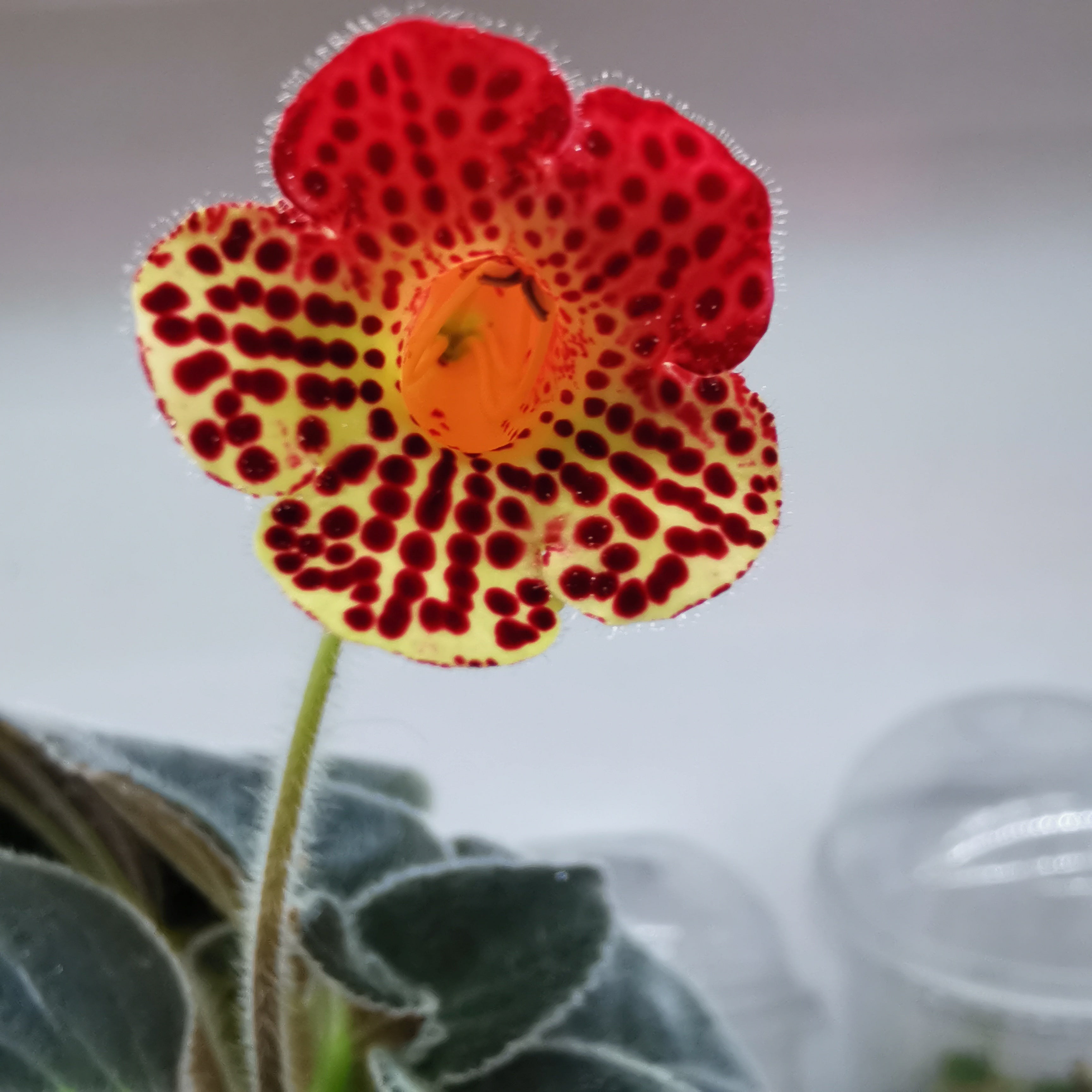Pearcea abunda es una especie de Ecuador. En un momento fue etiquetado como Pearcea USBRG 1994-276. Las hojas son de color verde brillante y están cubiertas de pelos suaves y peludas. Los tallos y las venas en la parte posterior de las hojas son de color rojo brillante y también están cubiertos con los mismos pelos cortos. Las flores son de color rojo brillante y están cubiertas de pelos. Esta planta pertenece a la familia de las violetas africanas y es sensible a las corrientes de aire frío y al agua fría. Esto es muy fácil de cultivar.