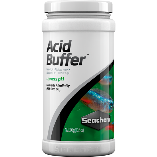 Acid Buffer™es un tampón libre de fosfatos para bajar el pH y tamponar este pH cuando se usa junto con Alkaline Buffer™, ambos amortiguadores han sido diseñados para acuarios con plantas o cuando los tampones que contienen fosfatos pueden provocar un problema de algas o de turbidez en el agua.