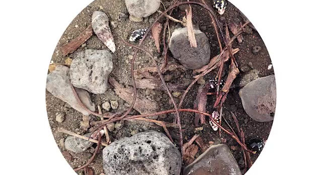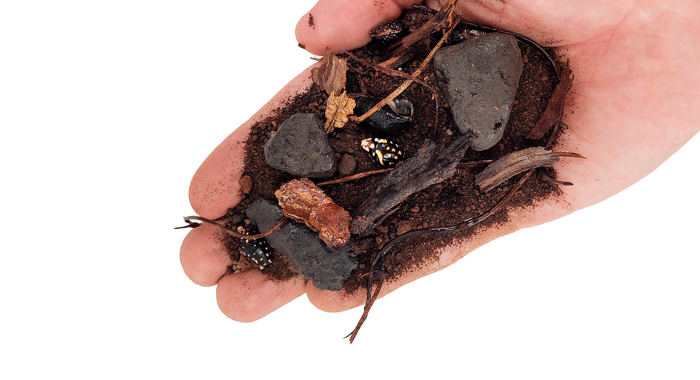 Este sustrato se compone de piedras texturizadas que muestran tonos de gris claro a oscuro, mezcladas con tiras oscuras de corteza, ramitas y hojas trituradas más claras. El detalle se agrega con conchas en diferentes tonos sutiles o mostrando manchas blancas brillantes. Todo esto se coloca junto con arena volcánica texturada de color gris oscuro de las montañas de Cataluña. Beck brinda oportunidades originales e inspiradoras para el artista de la naturaleza y su imaginación.