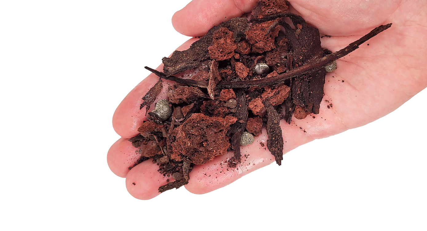 Este sustrato cuidadosamente elaborado se compone de una mezcla de arena y grava rojiza, mezclada con trozos triturados de rocas rojas. ¡A esto se suma una selección de productos botánicos e incluso algunas conchas de caracol diminutas! Esto proporciona una receta verdaderamente auténtica para una exhibición de hábitat natural.
