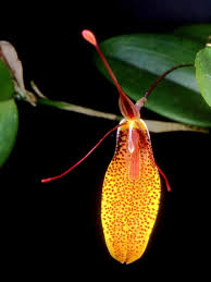 • Flores: Llamativas, de forma inusual con sépalos largos y retorcidos; colores variados (amarillo, naranja, púrpura, con vetas)