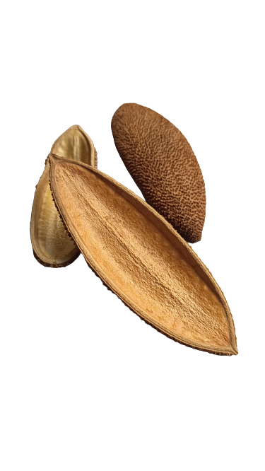 Tiene una corteza dura y sus cualidades tánicas son increíbles, tiene un tinte precioso de color ambarino y es una semilla que genera una gran colonia de infusorios para nuestros peces.