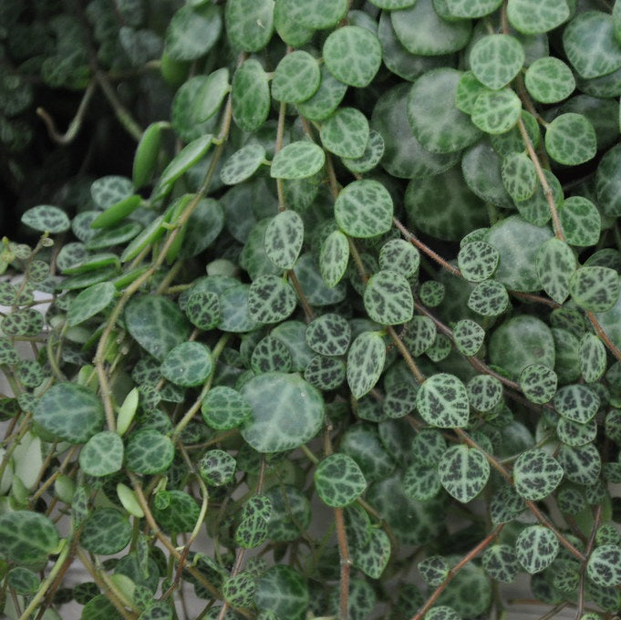 Es una planta semi-suculenta popular para cestas colgantes, terrarios o interiores. También conocida como collar de jade, esta planta se ve mejor en situaciones en las que puede arrastrarse, es decir, macetas altas o cestas colgantes.