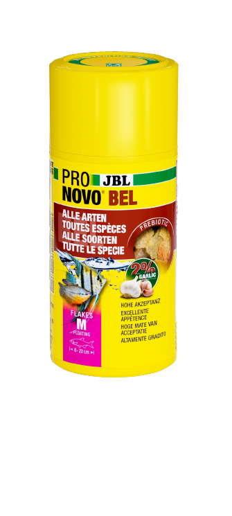 Alimento en formato de escamas para peces ornamentales entre 8 y 20 cm .