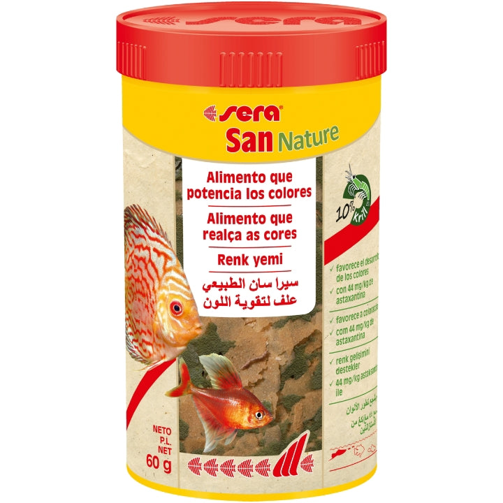 Descripción sera San Nature es el alimento que potencia los colores, sin colorantes ni conservantes, para todos los peces ornamentales...