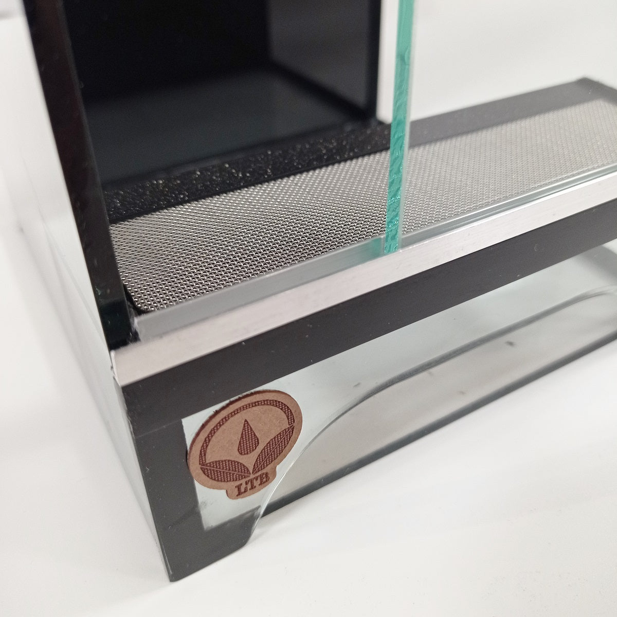 Los terrarios LTB estándar se hacen al detalle para el máximo disfrute de tu urna. Traen de serie rejilla anti Drosophila de acero inoxidable y puerta panorámica, con doble rejilla en zona baja y alta para crear una perfecta ventilación para evitar el empañado de los cristales.
